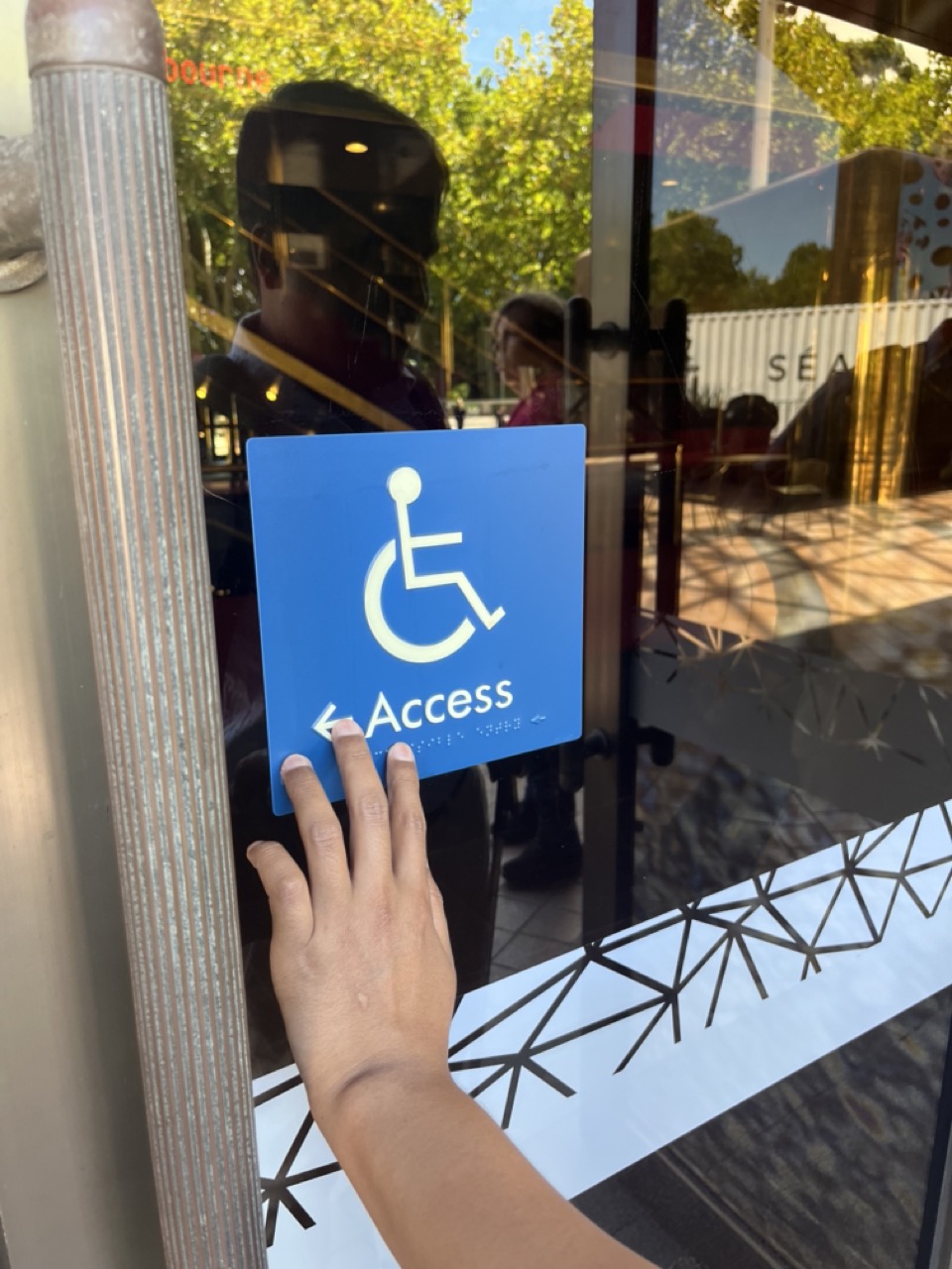 Public transport access, drop-off points and walking paths. Checked if train stations had clear signs, if trams had ramps and if footpaths were flat with no trip hazards